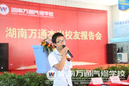 湖南万通汽修学校11届全能一班毕业学子周伟,2014年,已经成家的我想要立一番事业。刚好那一年中国的汽车销量第一次突破千万辆达到1300多万辆,听到这个新闻,让我看到汽修行业前景巨大,于是我下定决心在选择汽车维修行业建立自己的事业。在选择学校时,通过实地调察,询问在校学生,我选择了实训设备多、校园环境好、师资力量强、专注汽修教育的湖南万通汽修学校。