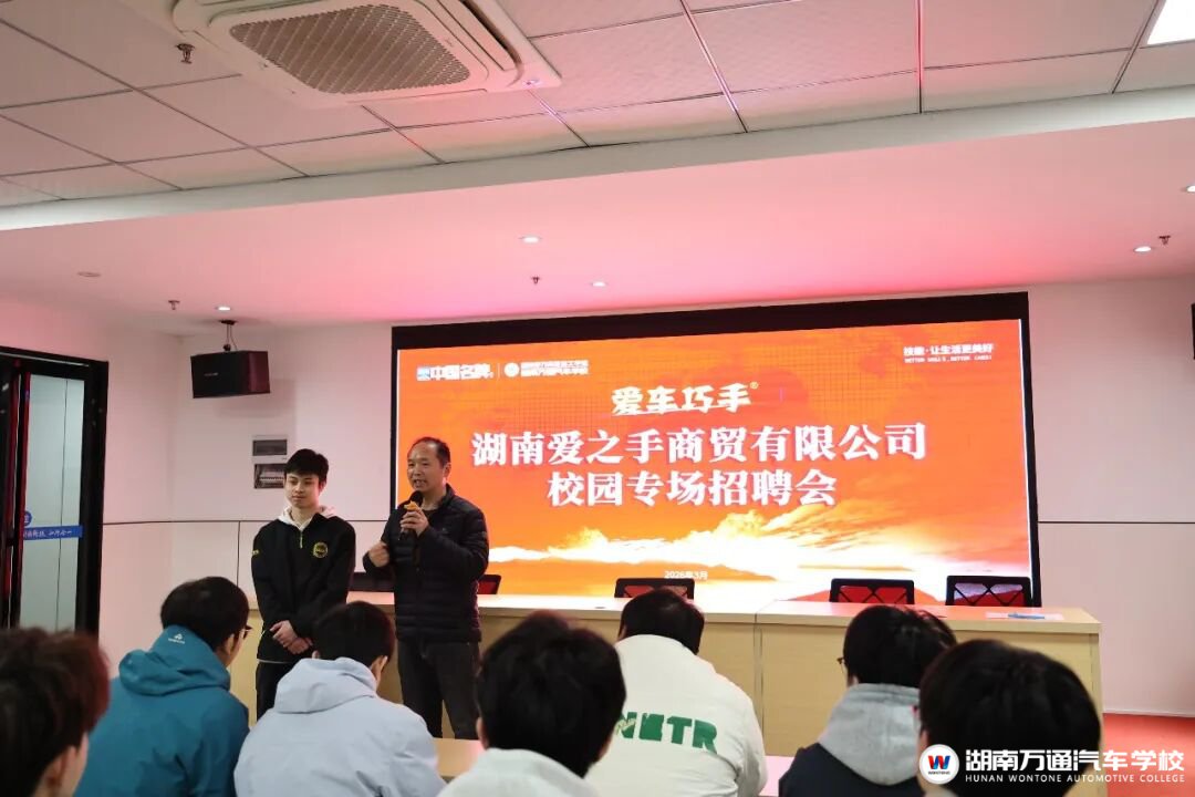 3月2日下午,湖南爱之手商贸有限公司(爱车巧手) 校园专场招聘会在湖南万通成功举办。企业深耕汽车服务领域,本次带来汽车维修、保养、洗美、装潢、技术管理等对口岗位,精准匹配我校汽车专业人才培养方向。